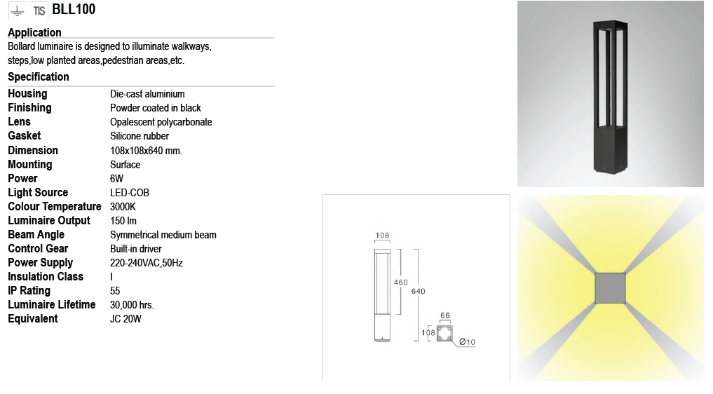 • โคมไฟสนาม BLL100 LED 6W