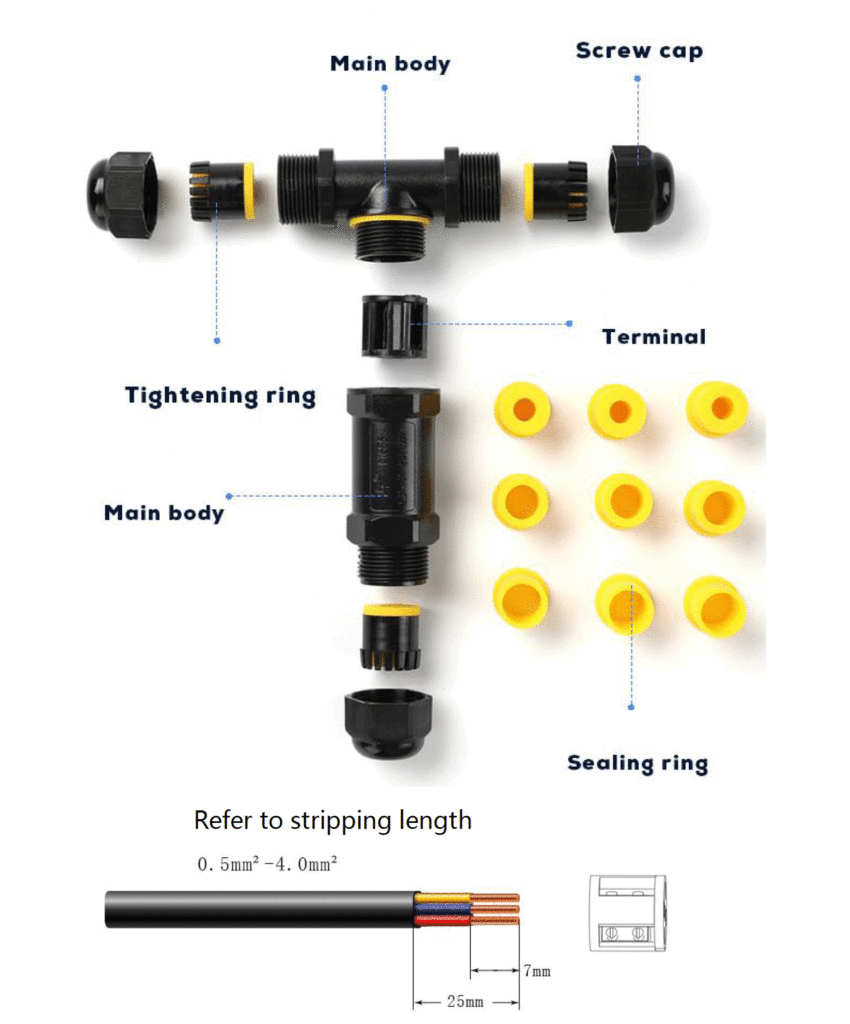 - ใช้กับสายไฟขนาด 0.5 ~ 4mm²cross section, 4-8mm cable diameter