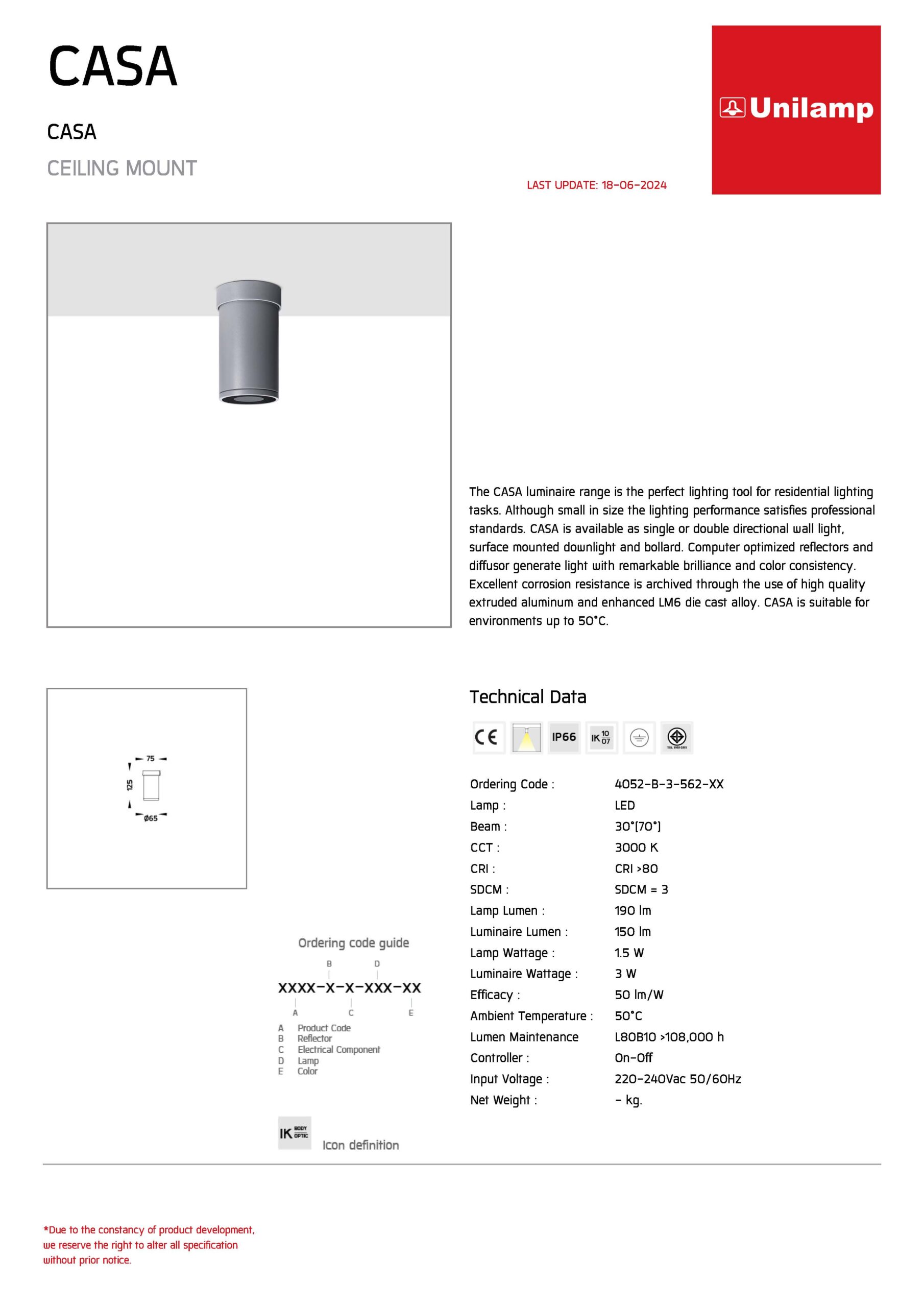 โคมไฟดาวน์ไลท์ติดลอยภายนอก CASA-4052