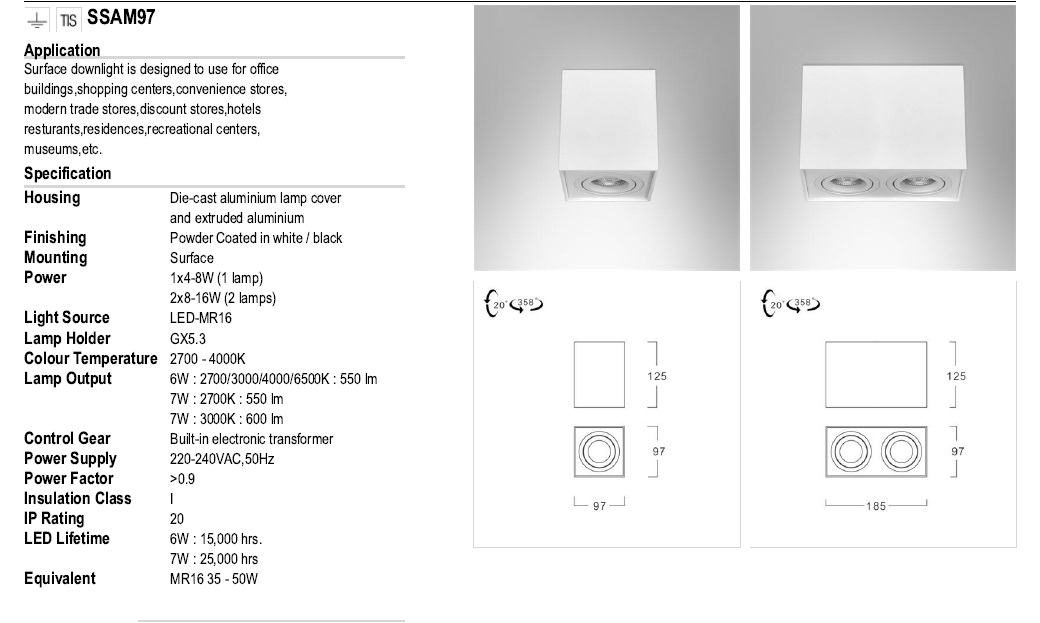 • ดาวน์ไลท์ติดลอย SSAM97-MR16