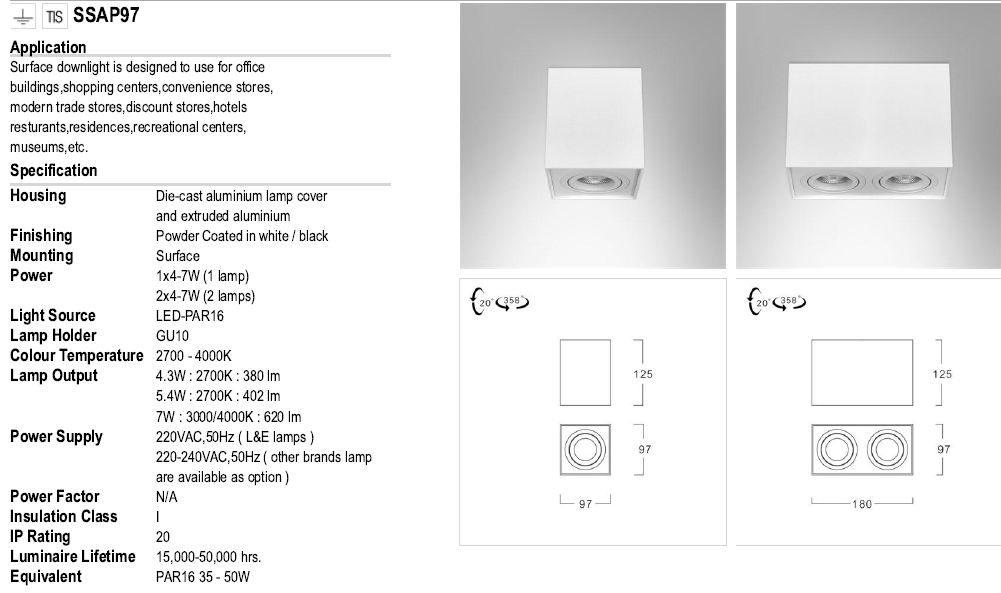 • ดาวน์ไลท์ติดลอย SSAP97-GU10