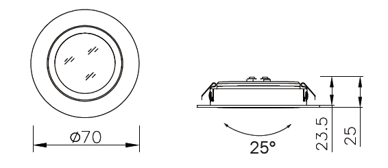 - ขนาดโคม DIA: 70 mm.* H: 25 mm.
