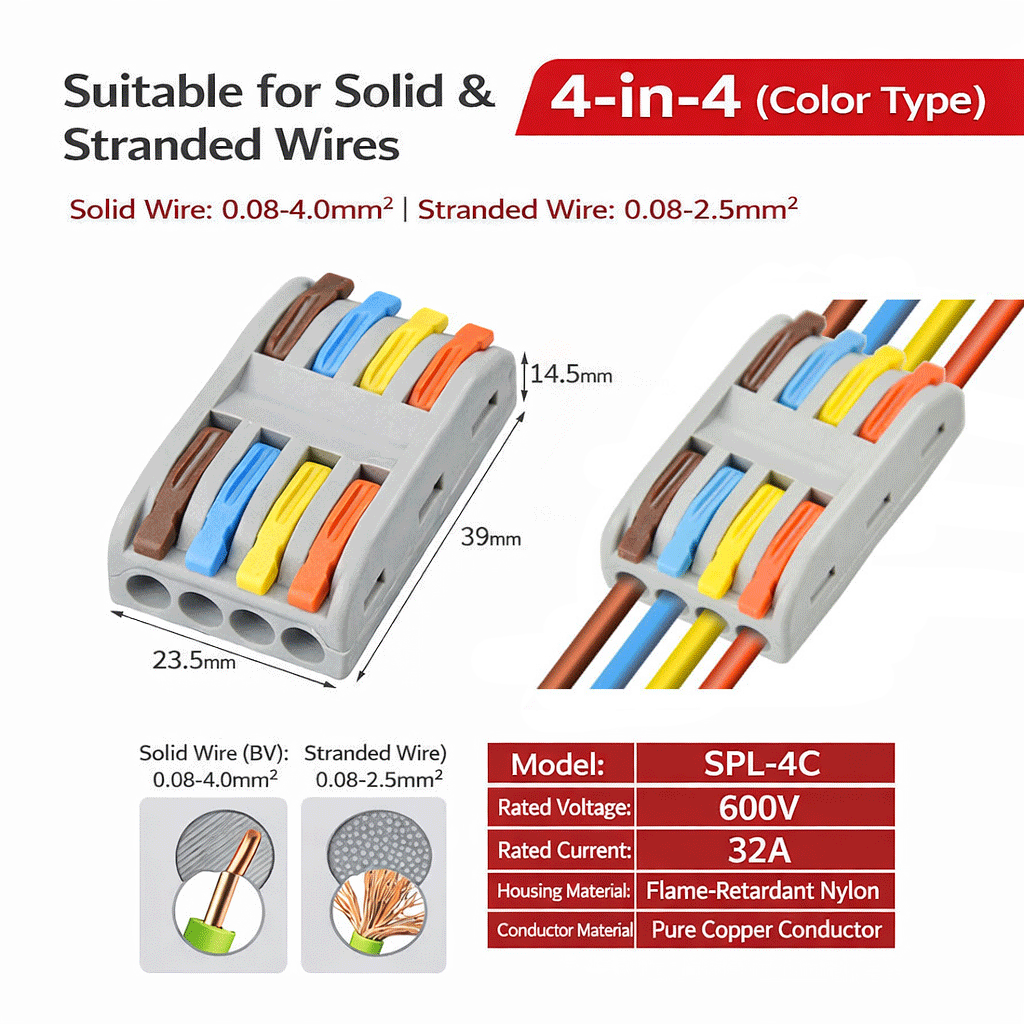 - ข้อต่อสายไฟแบบ Quick connect เข้า 4 ออก 4