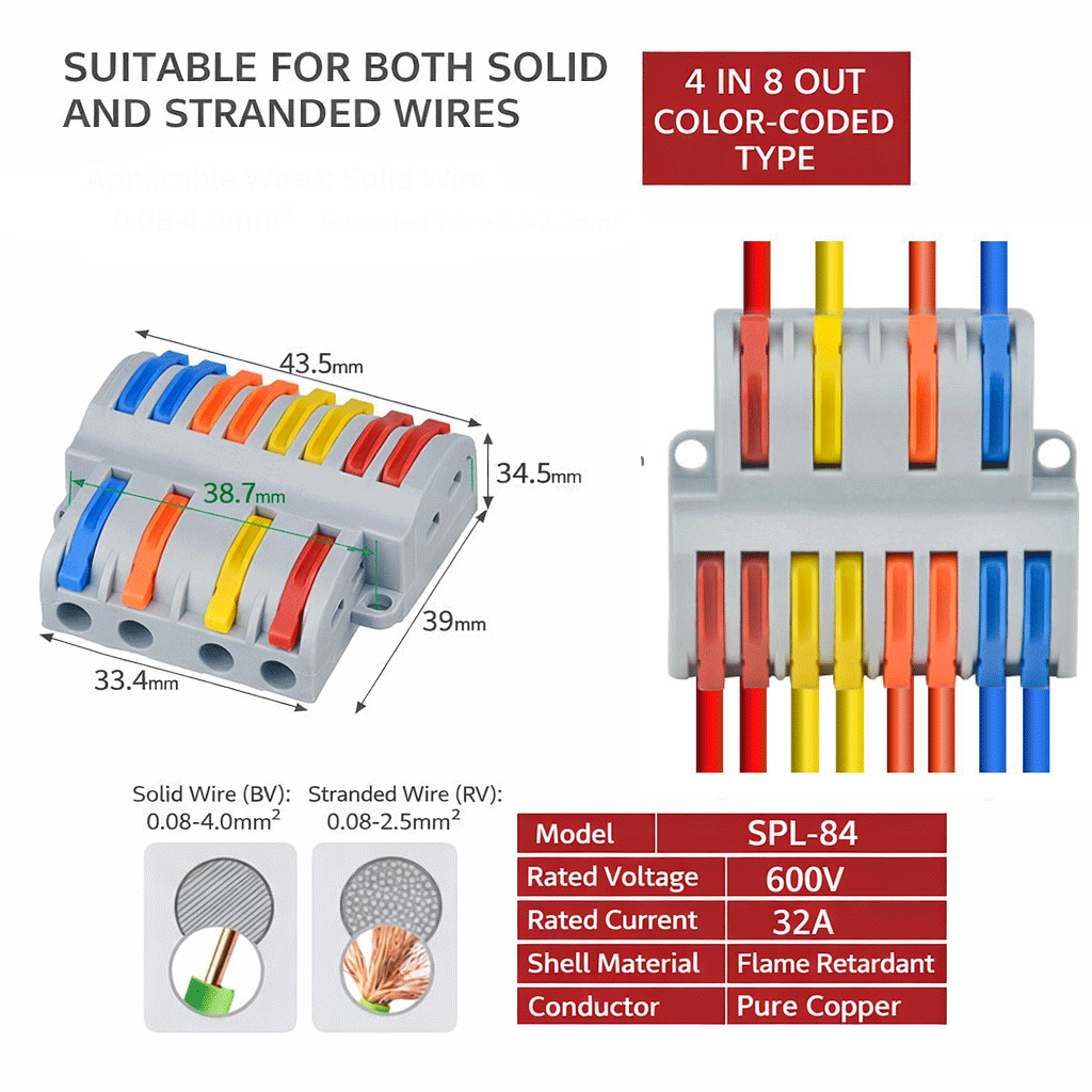 • ข้อต่อสายไฟแบบ Quick connect เข้า 8 ออก 4