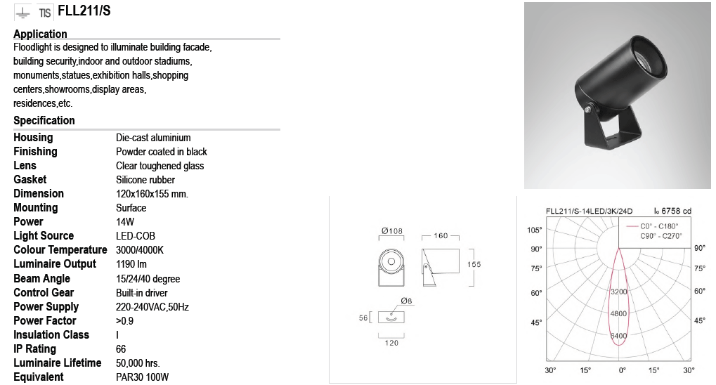 • โคมไฟส่องต้นไม้ สปอตไลท์ FLL211/S LED 14W
