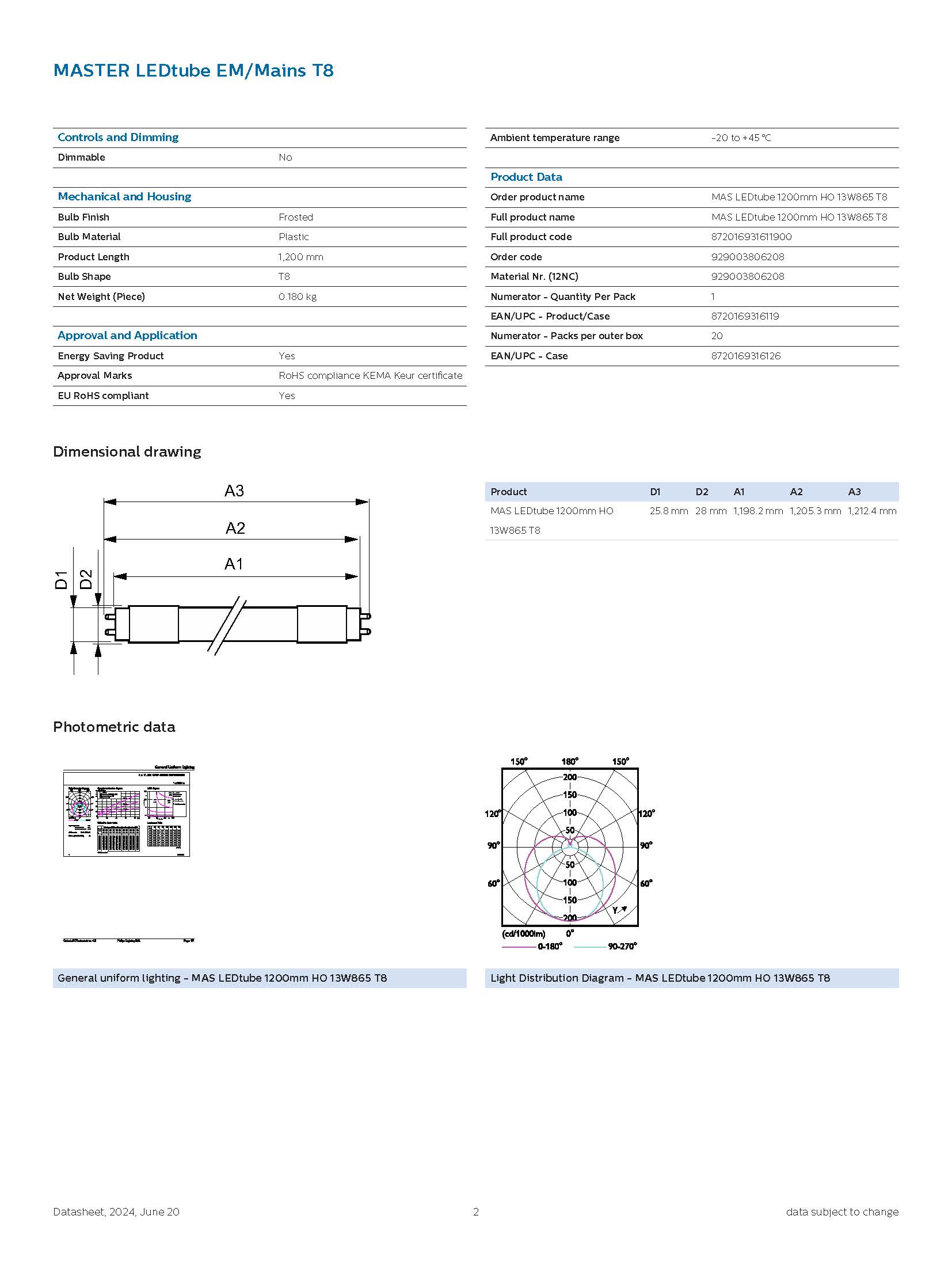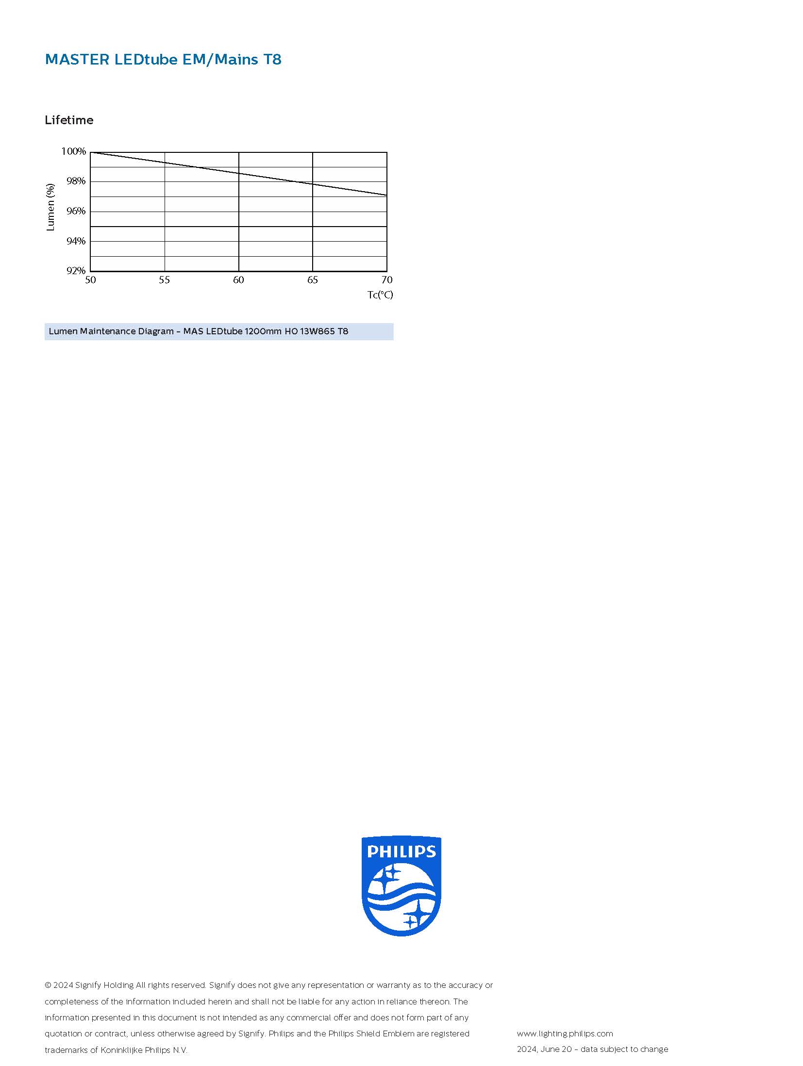 • ดาวน์โหลดสเปคหลอด Philips MAS LEDtube 1200mm HO 13W 865