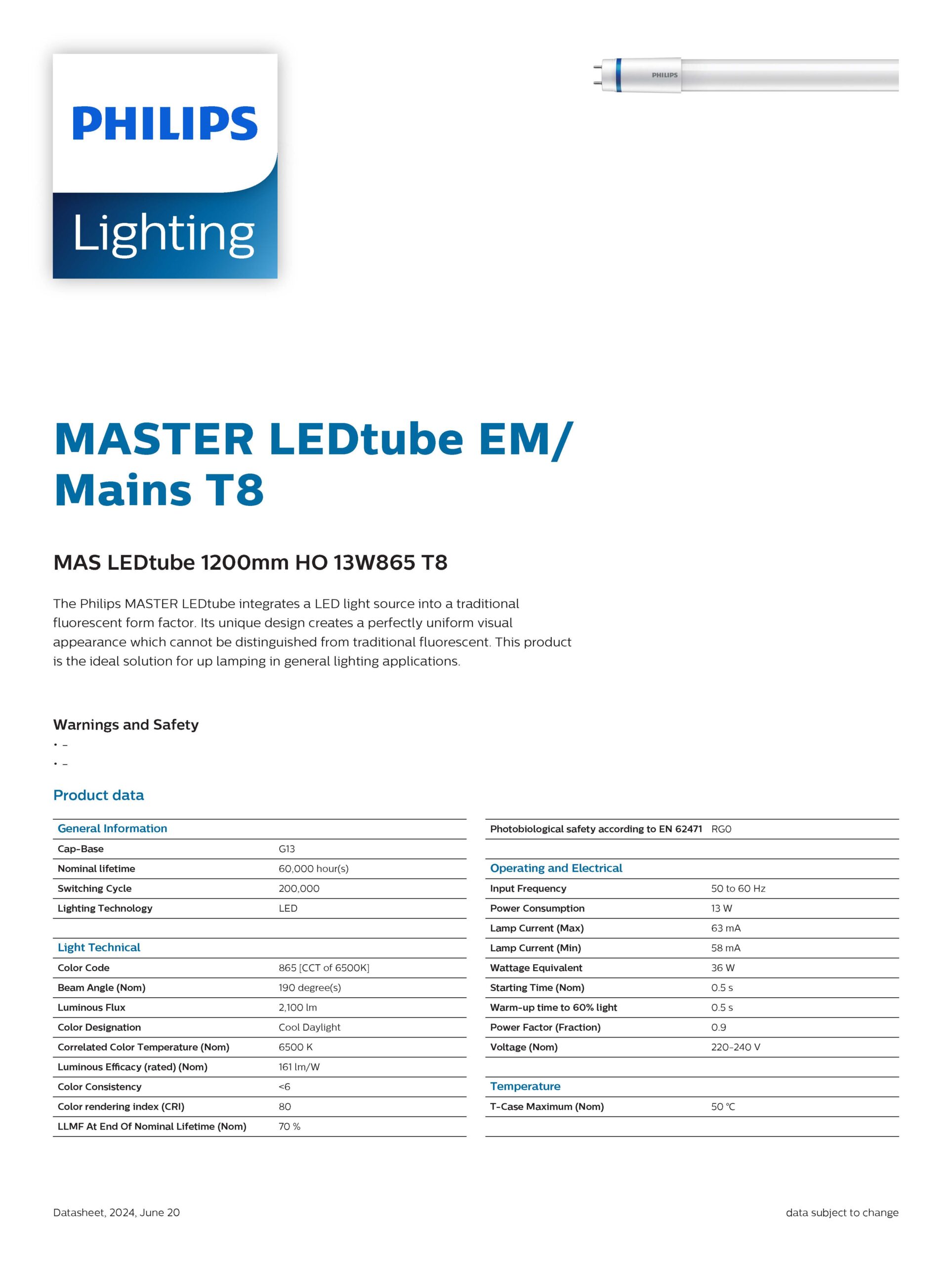 หลอดไฟ-Philips-master-Led-t8-13w 60000 ชั่วโมง