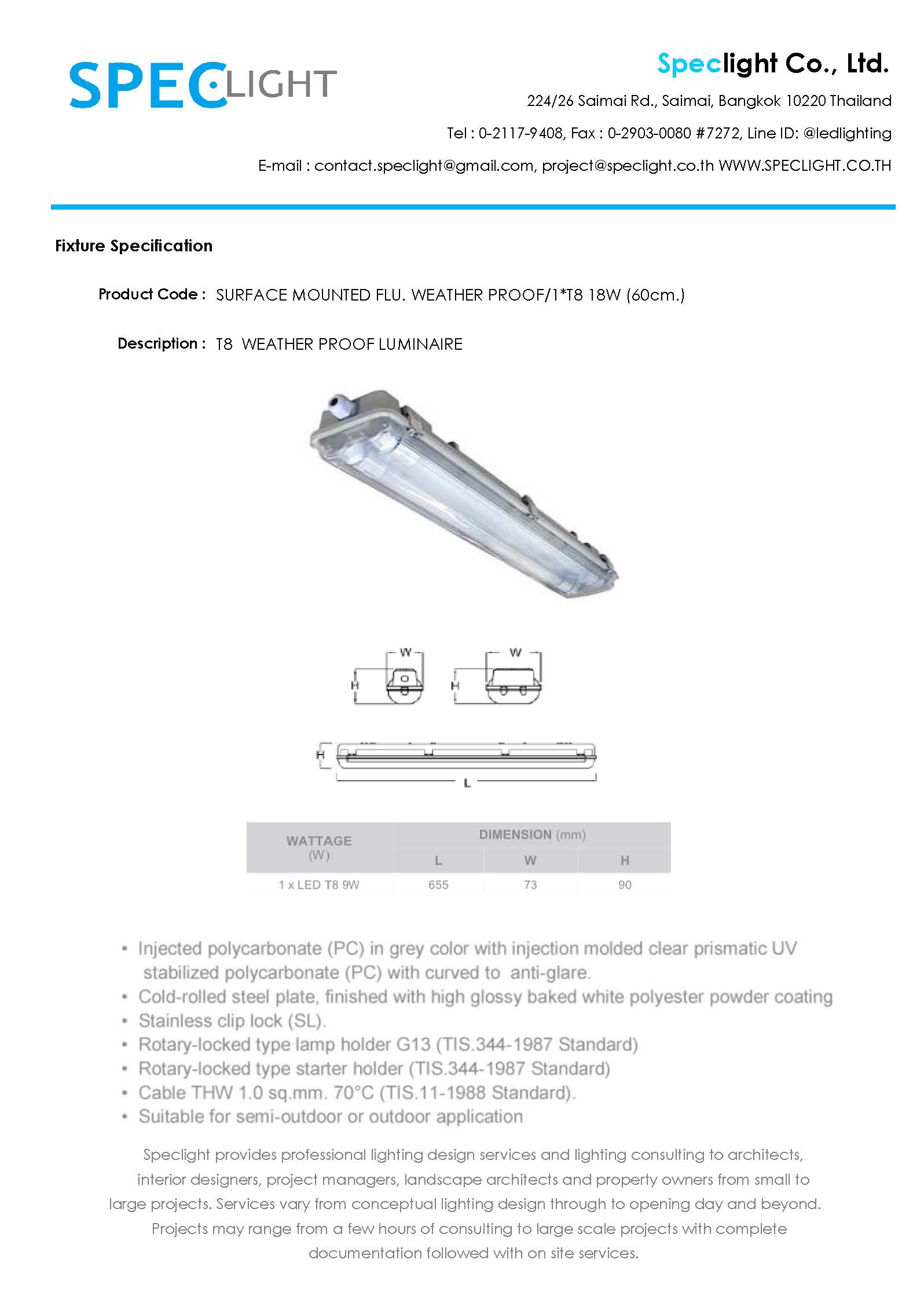 โคมกันน้ำกันฝุ่น หลอด T8.