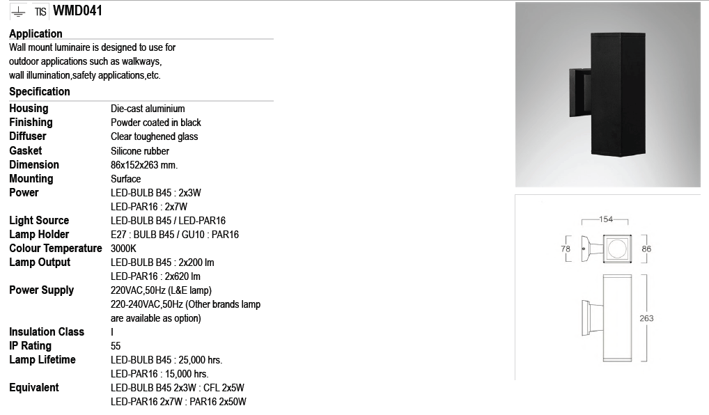 - ไฟติดผนังภายนอก WMD041