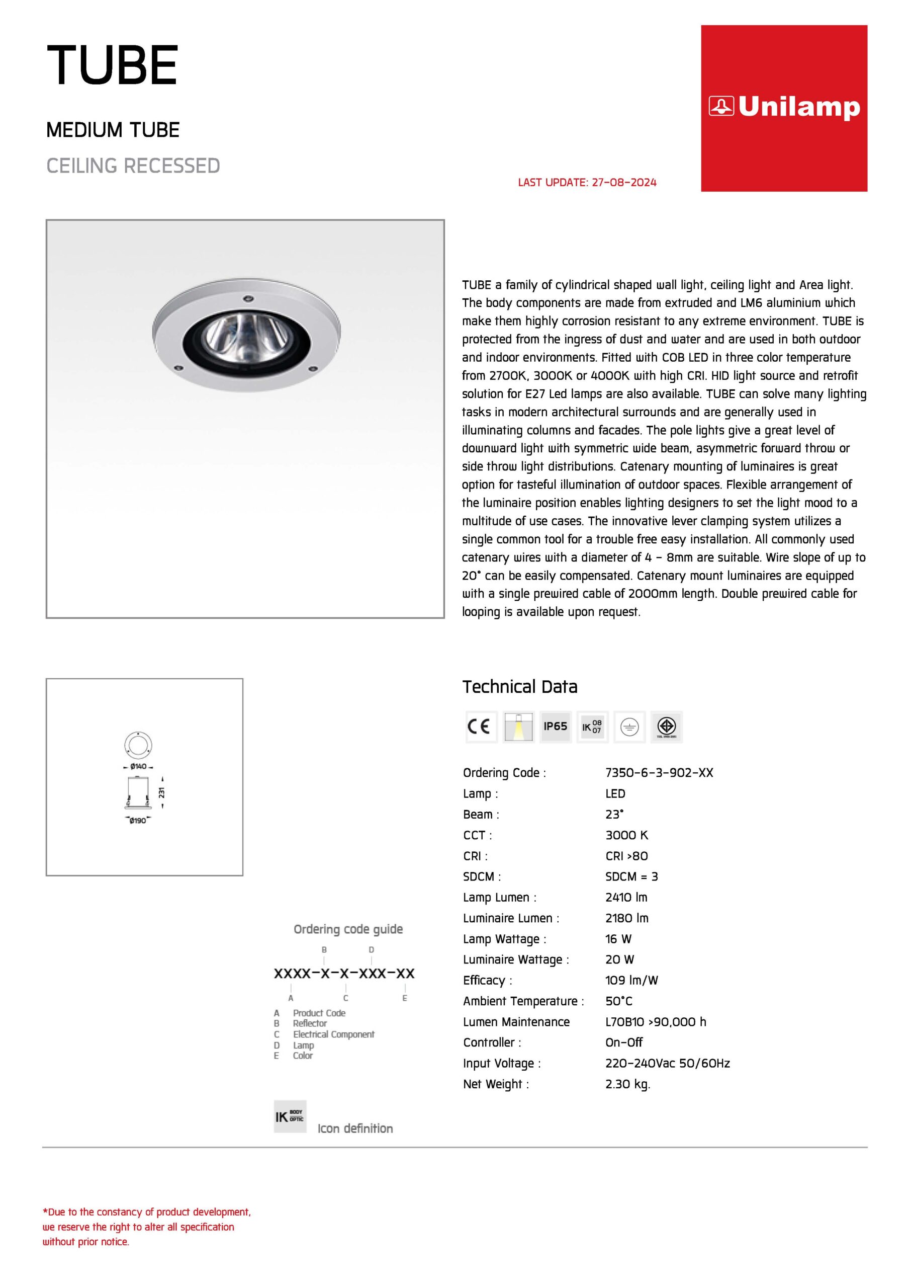 • ดาวน์โหลดสเปค ดาวน์ไลท์ภายนอก MEDIUM TUBE 7350