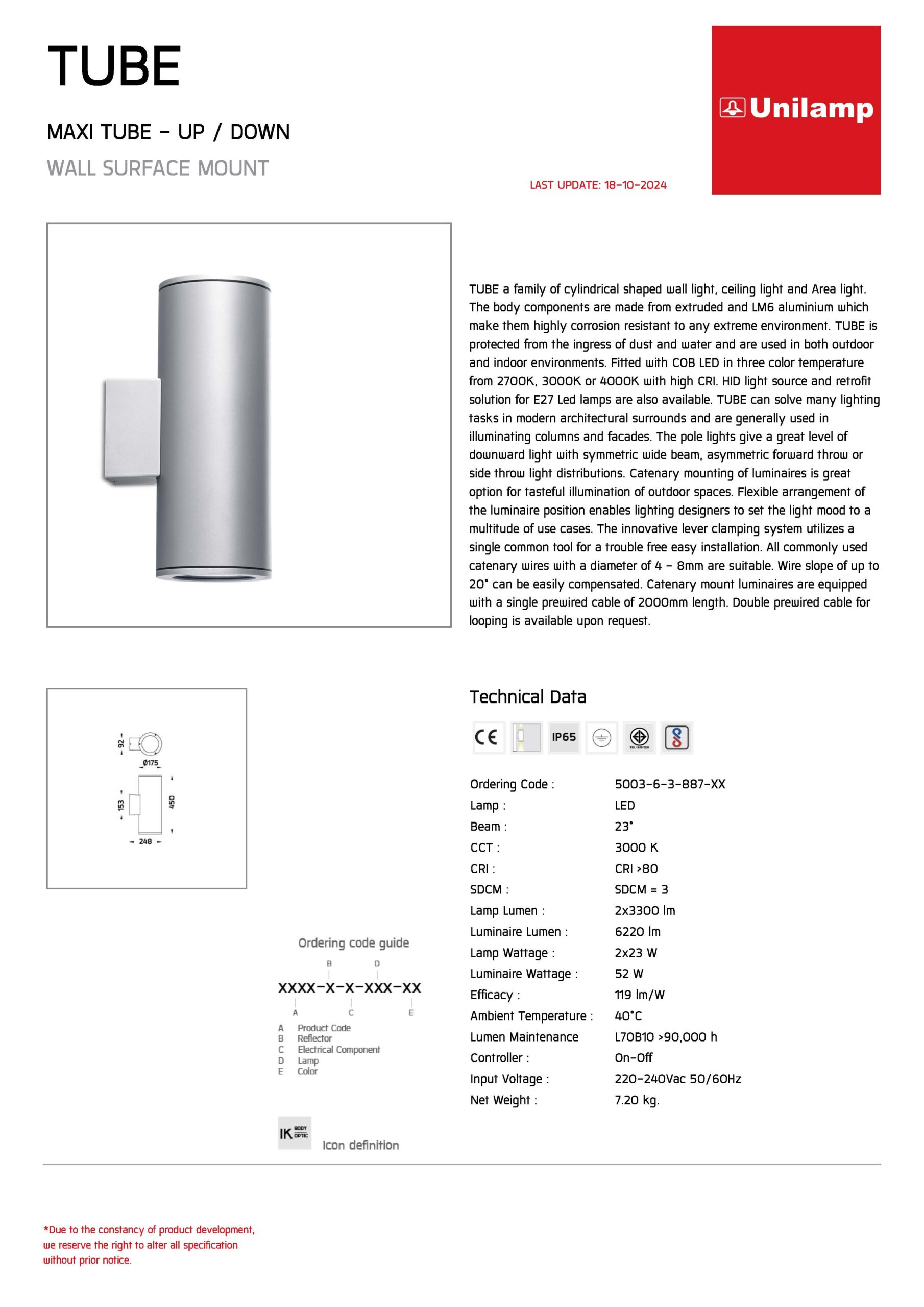 • โคมไฟติดผนังภายนอก MAXI TUBE UP-DOWN-5003