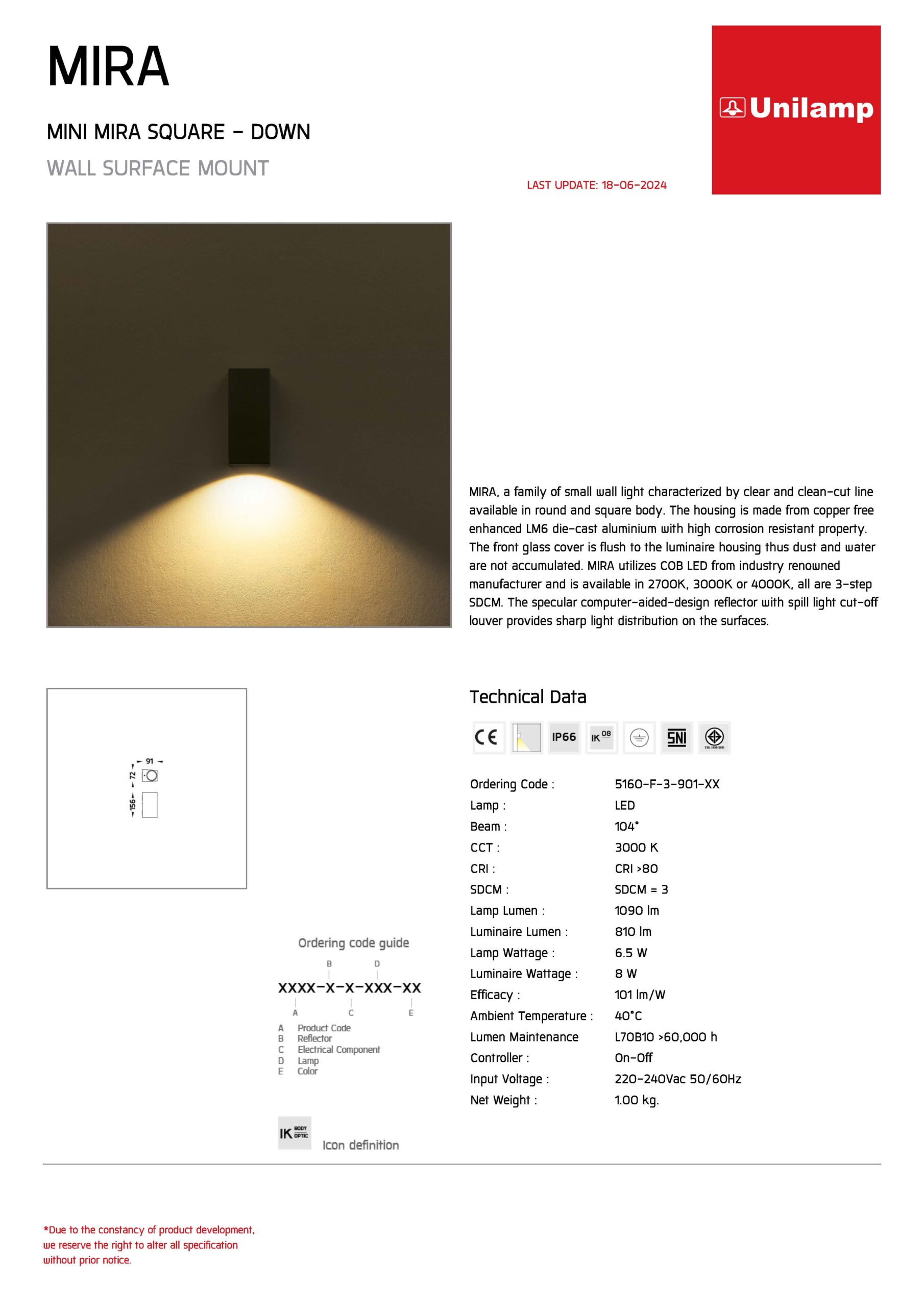 • โคมไฟติดผนังภายนอก MINI MIRA SQUARE DOWN-5160