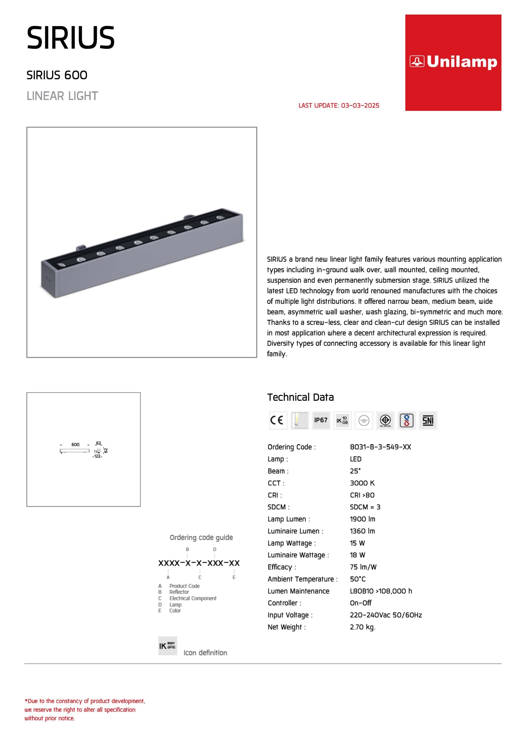โคมไฟติดผนัง SIRIUS 600-8031