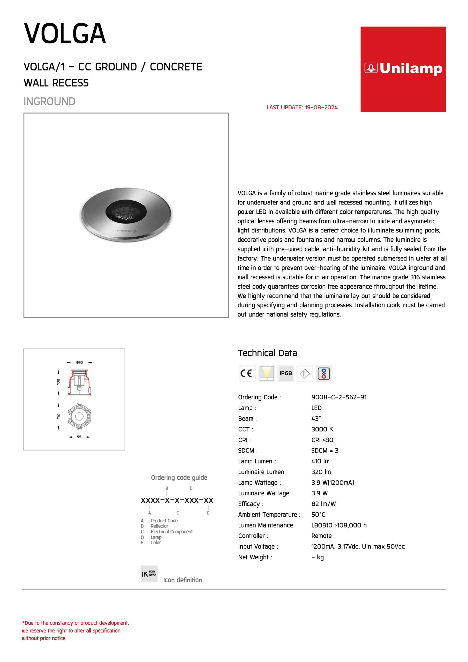 โคมไฟฝังพื้น VOLGA-9008