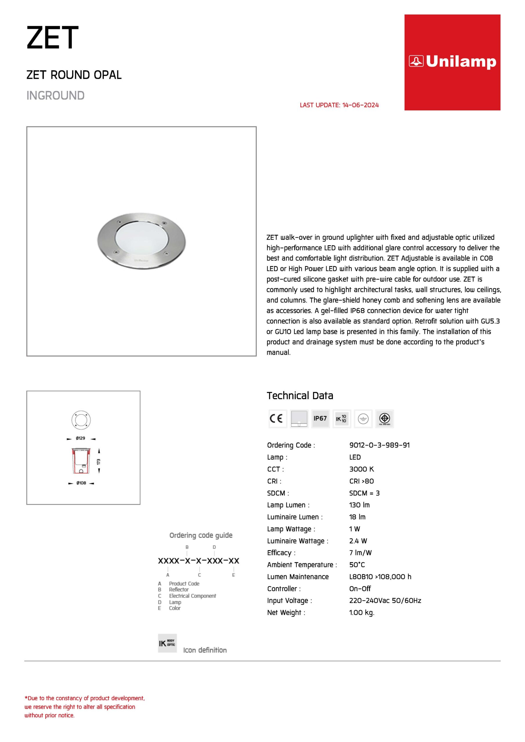 โคมไฟฝังพื้น ZET ROUND OPAL-9012