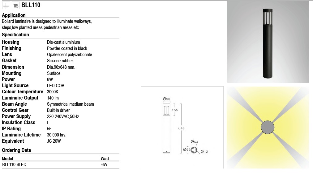 • โคมไฟสนาม BLL110 LED 6W