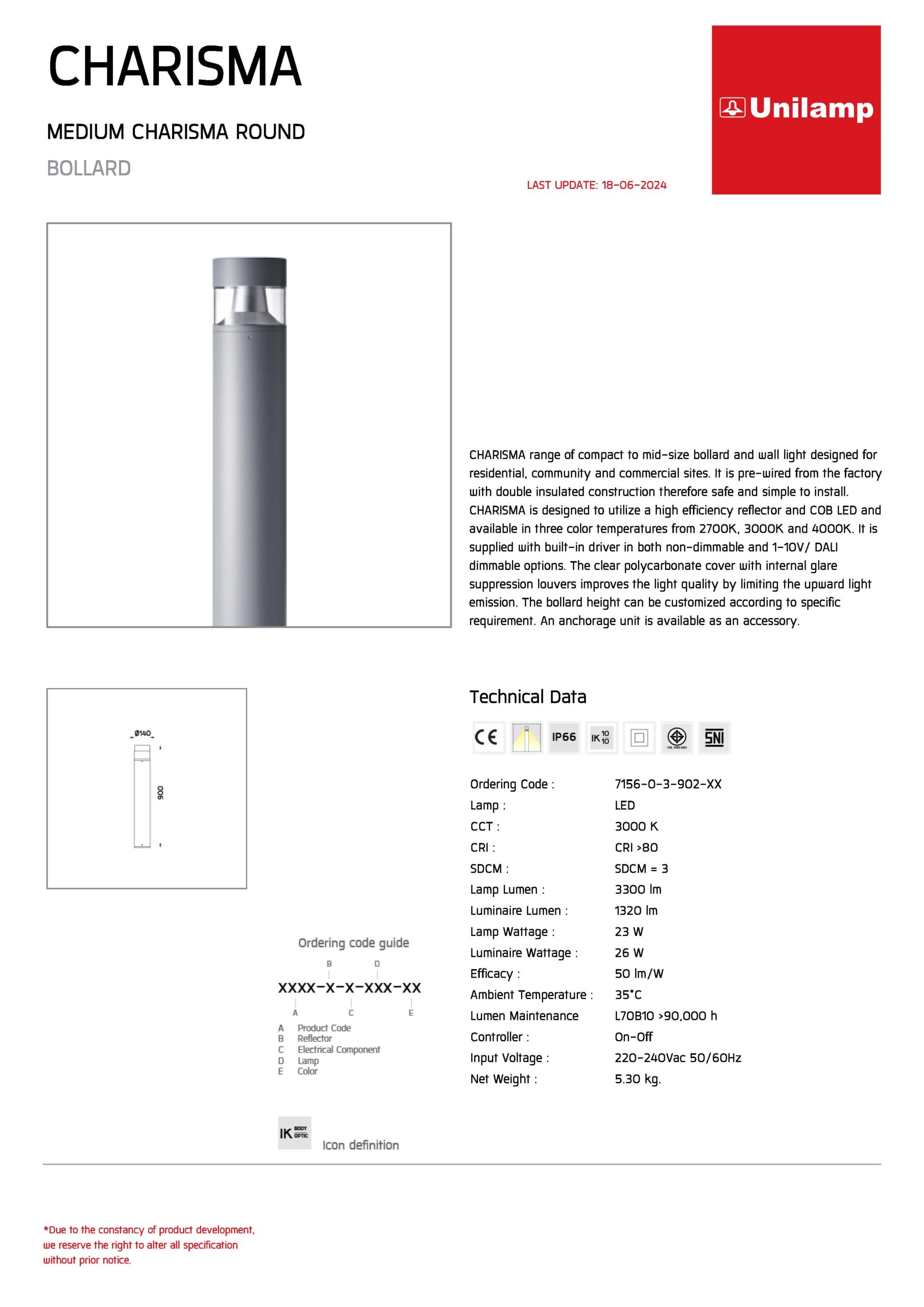 • ดาวน์โหลดสเปค โคมไฟเสาสนาม MEDIUM CHARISMA ROUND 7156
