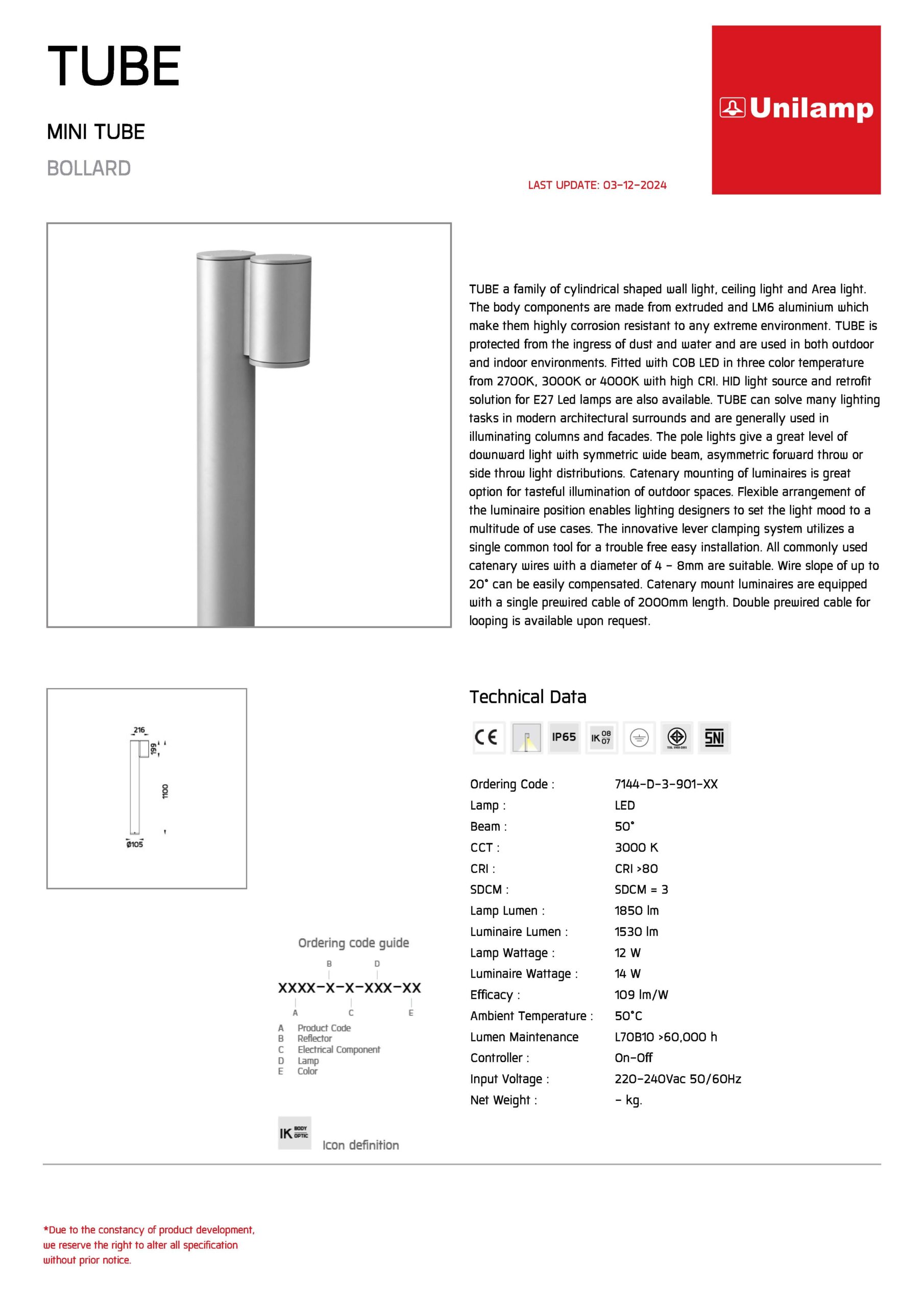 • ดาวน์โหลดสเปค โคมไฟเสาสนาม MINI TUBE-7144