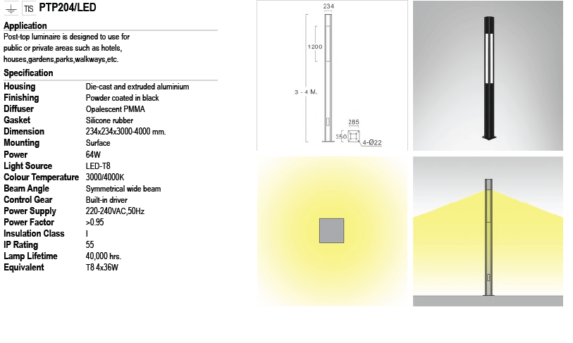 • โคมไฟเสาสูง Pole light PTP204-LED-T8x4