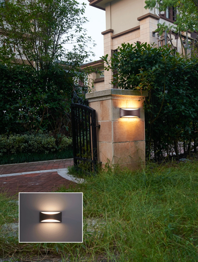 - โคมไฟติดผนังภายนอก ดีไซน์โค้งมนสไตล์โมเดิร์น ให้แสงสว่างทั้งบนและล่าง สร้างมิติและบรรยากาศหรูหรา เหมาะสำหรับติดตั้งบริเวณผนังภายนอกบ้าน, ทางเดิน, สระว่ายน้ำ, รีสอร์ท หรือพื้นที่พักผ่อนกลางแจ้ง