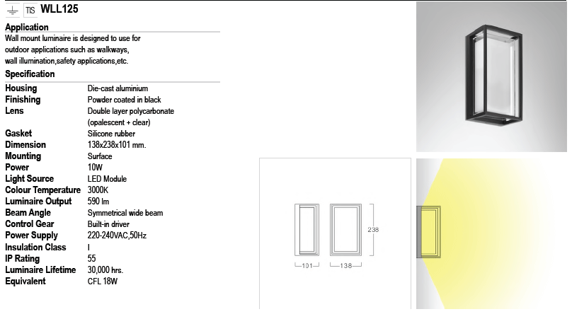 • ไฟติดผนังภายนอก WLL125 LED 10W