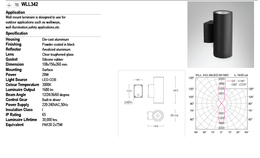 • ไฟติดผนังภายนอก WLL342 LED 28W