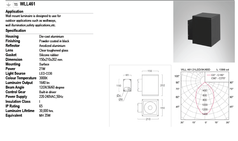 • ไฟติดผนังภายนอก WLL461 LED 21W
