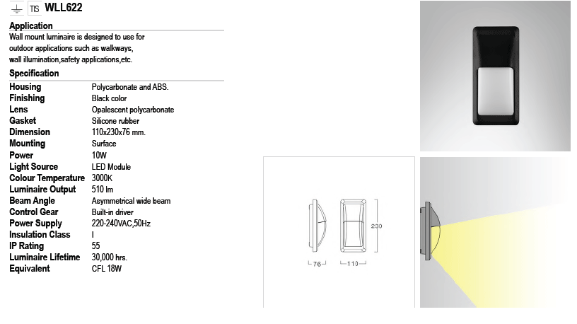 • ไฟติดผนังภายนอก WLL621 LED 10W