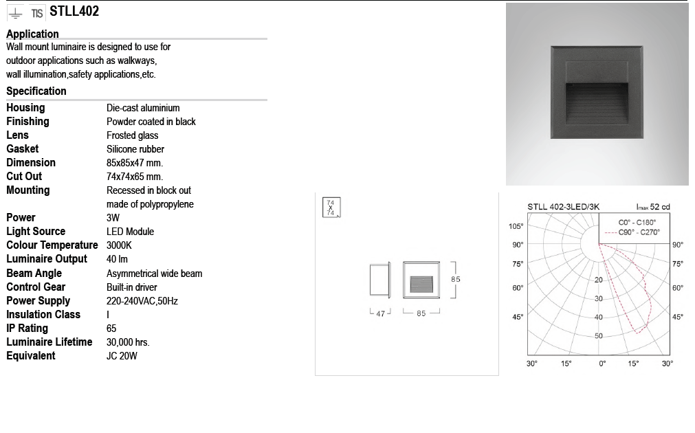 - ขนาดโคม DIA : 85×85 mm. * H : 47 mm.