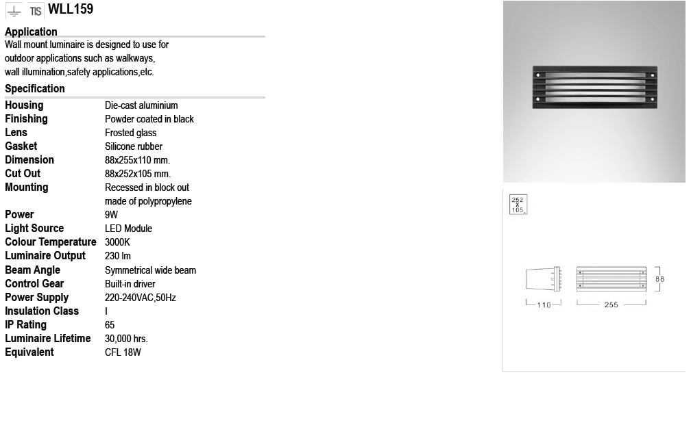 - ขนาดโคม DIA : 88×255 mm. * H : 110 mm.