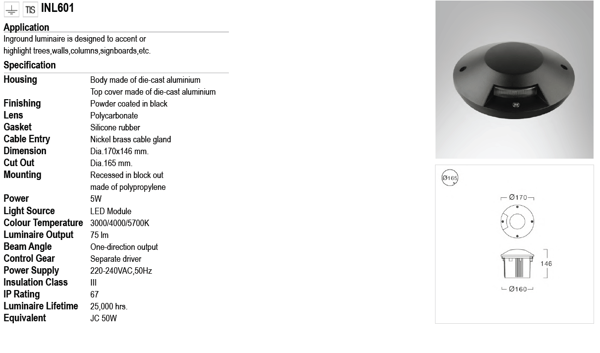 - ไฟฝังพื้น INL601 LED 5W
