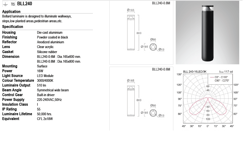 • Bollard-light BLL240 LED 16W