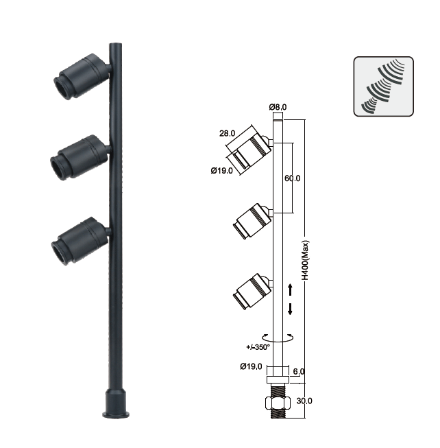 - ขนาดโคม DIA: 19×28.1 mm. ปรับความสูงได้ H: 400 mm.