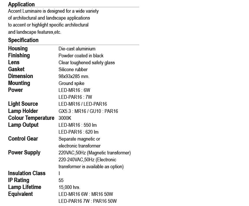- ใช้ติดตั้งบนพื้นหรือผนัง ส่องสว่างทางเดิน สวน อาคาร