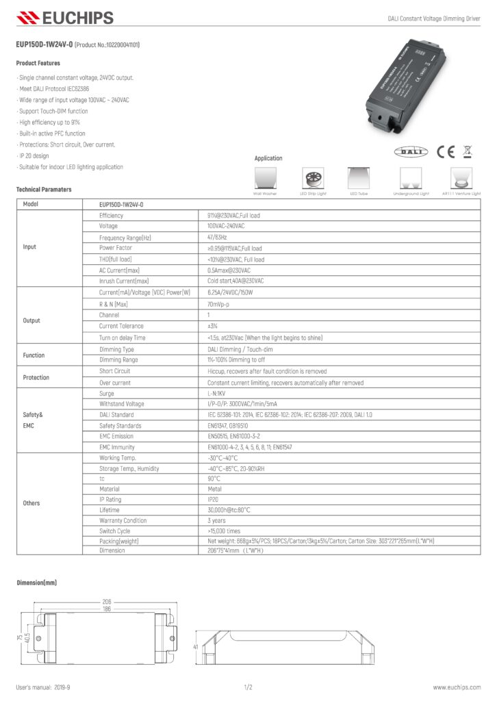 • Constant voltage dimmable driver 24V 150W  สำหรับ DALI DIMMER