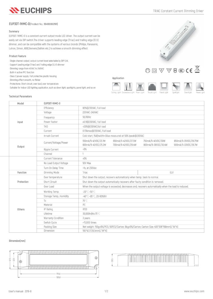 • Download spec sheet EUP30T-1HMC-0 30W