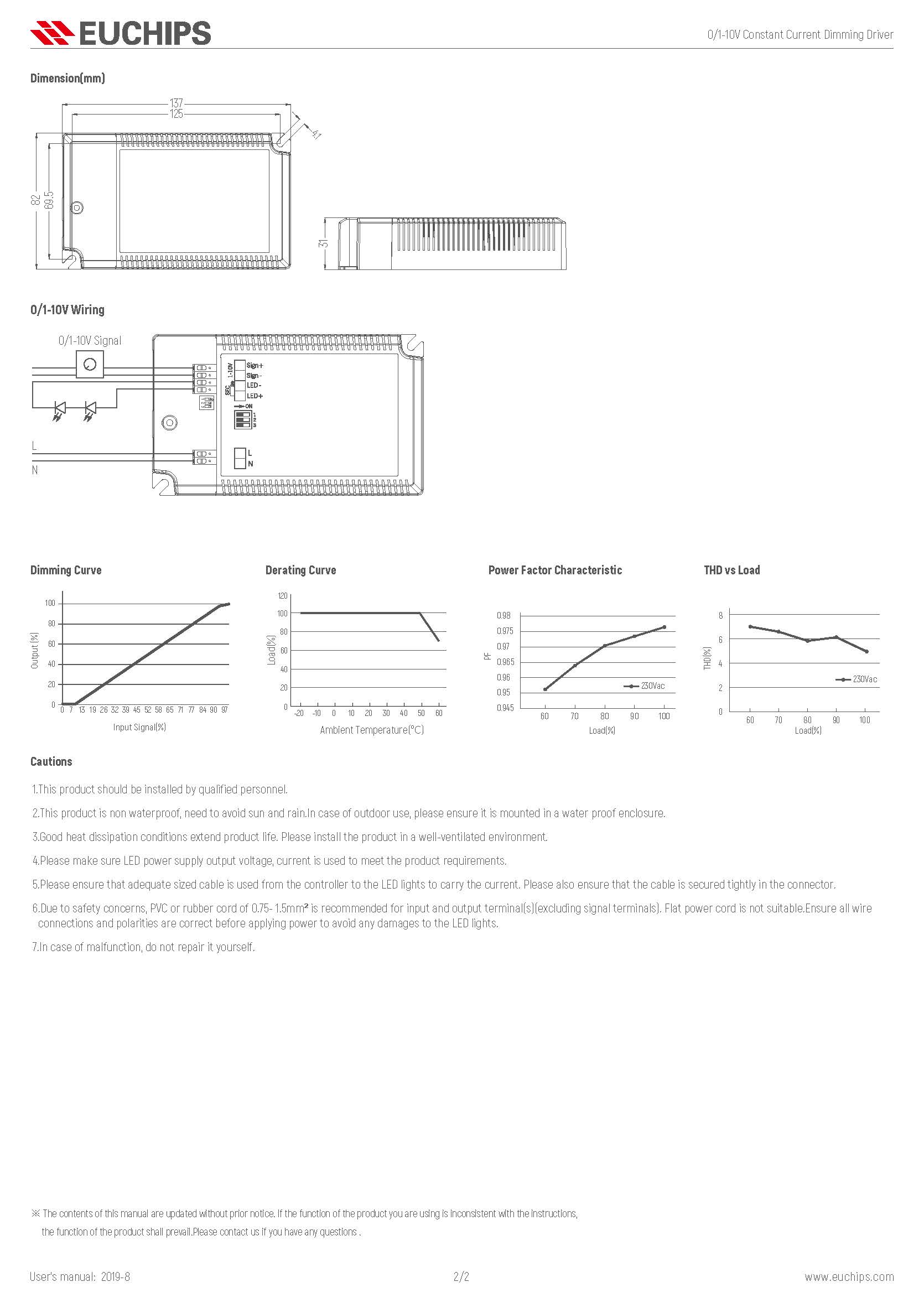 - Dimming range 1-100% full range of dimming, LED starts dimming from 1%