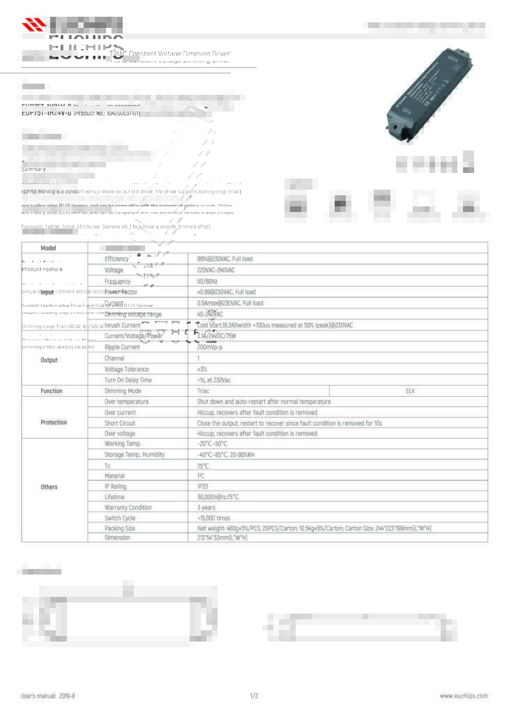 - Download spec sheet EUP75T-1H24V-0
