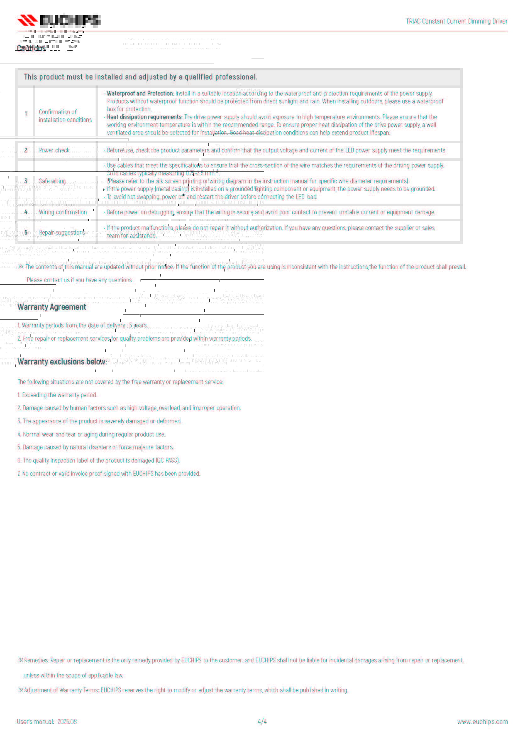 • Dimming range 1-100% full range of dimming, Dimming depth 1%