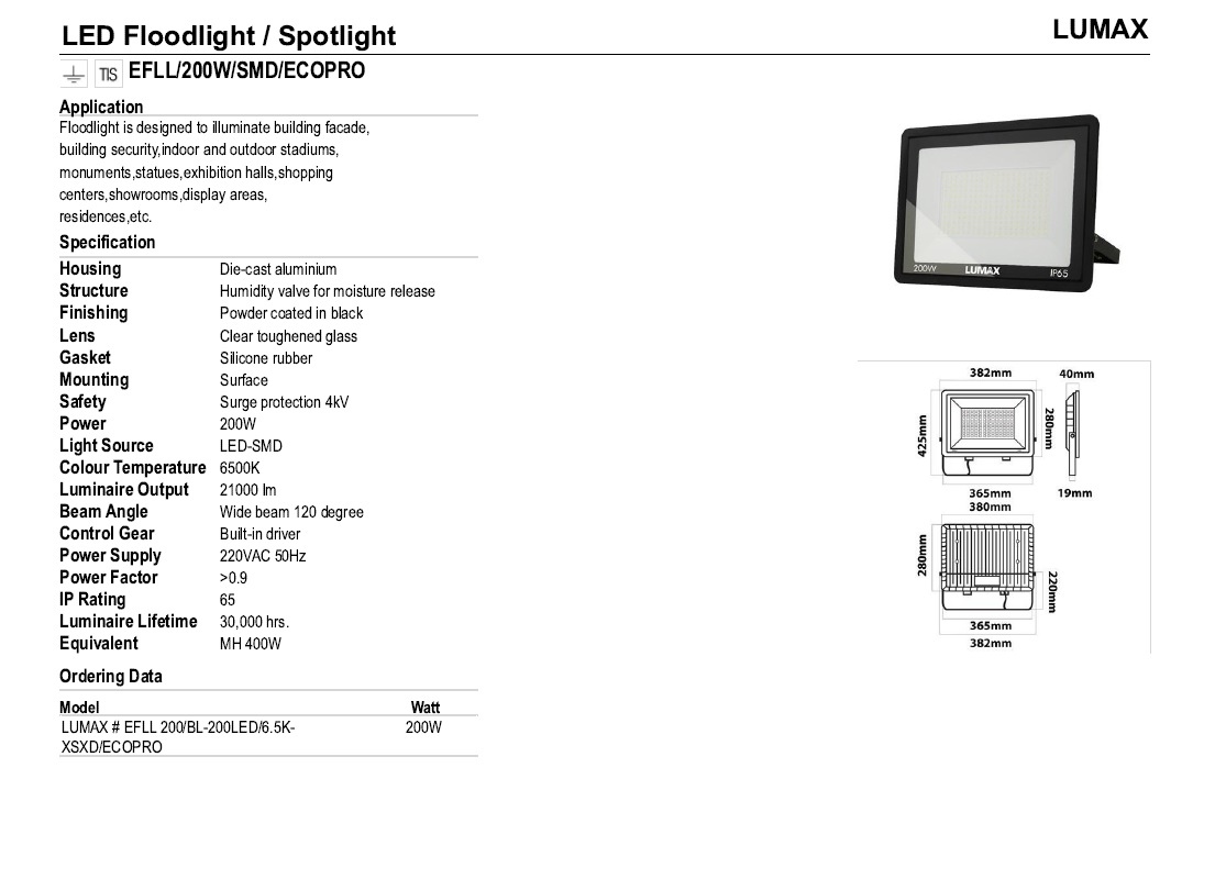 • FLOODLIGHT LUMAX LED EFLL 200W
