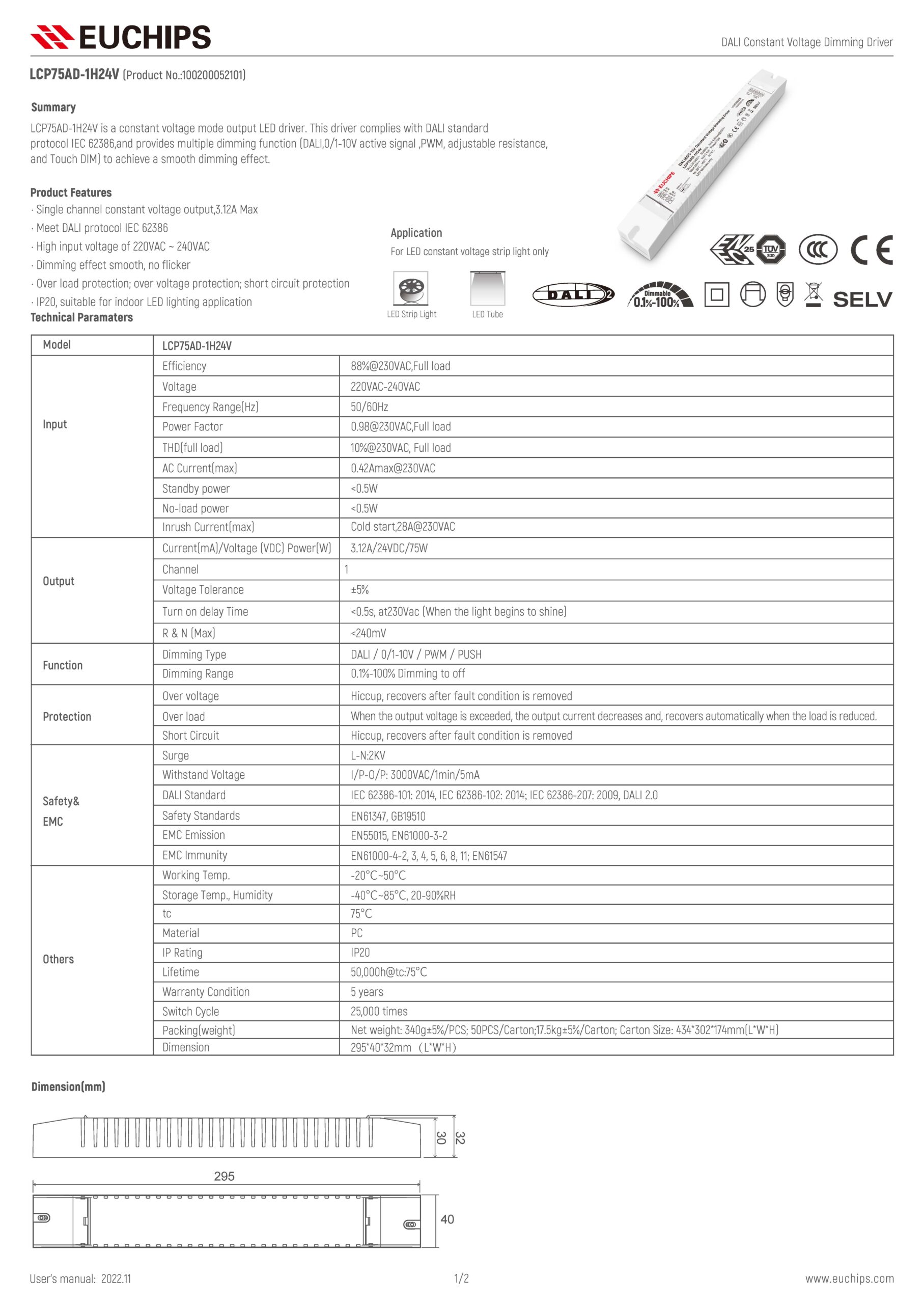 - 1-100% full range of dimming, LED starts dimming from 1%