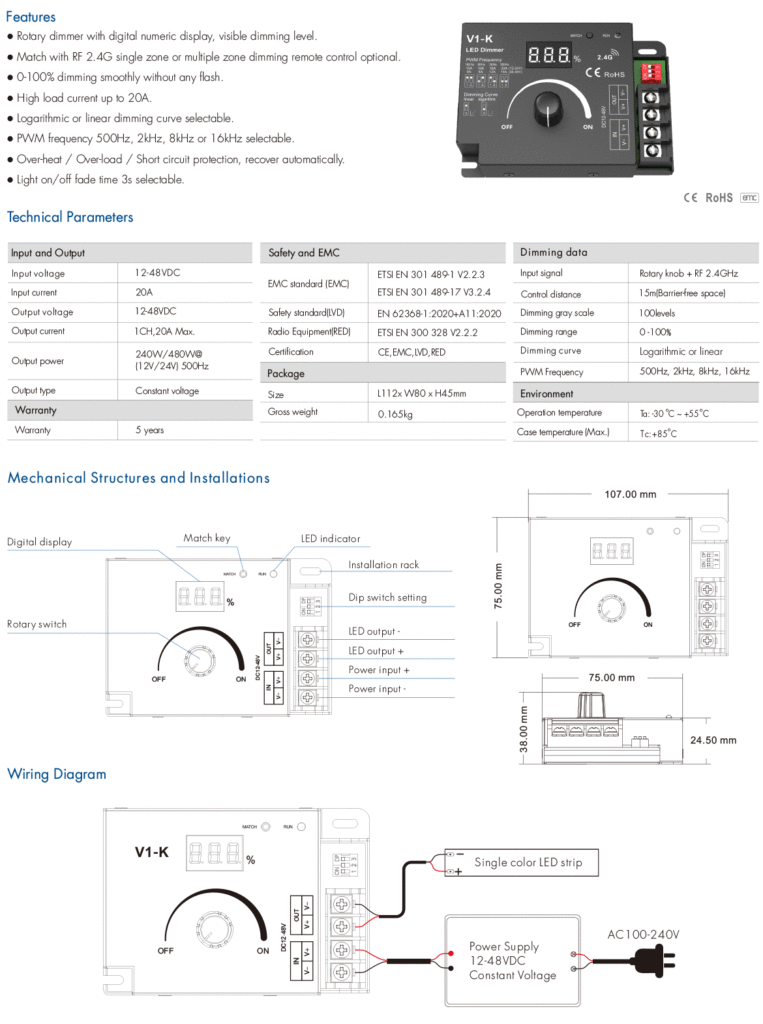 • ดาวน์โหลดสเปค V1-K RF DIMMING CONTROLLER